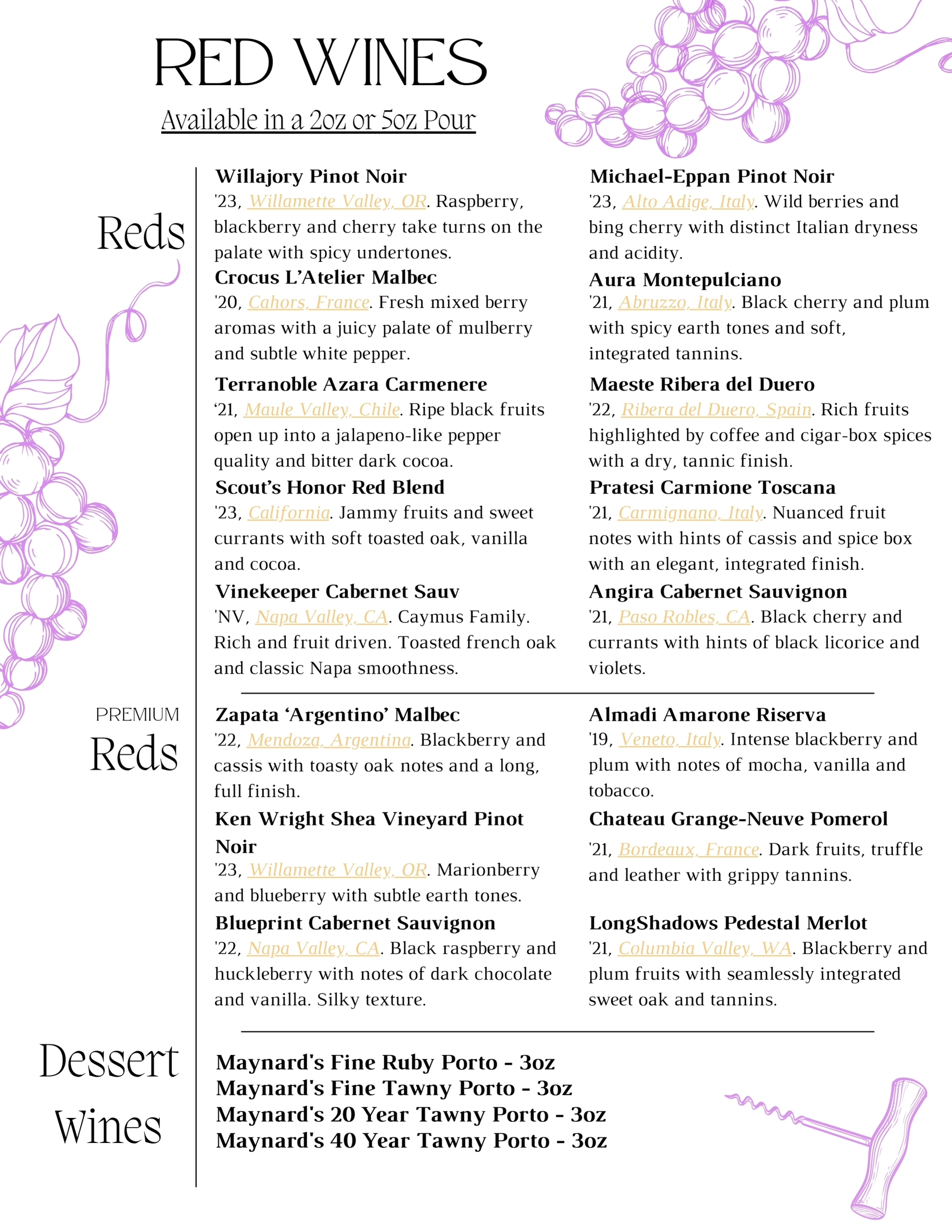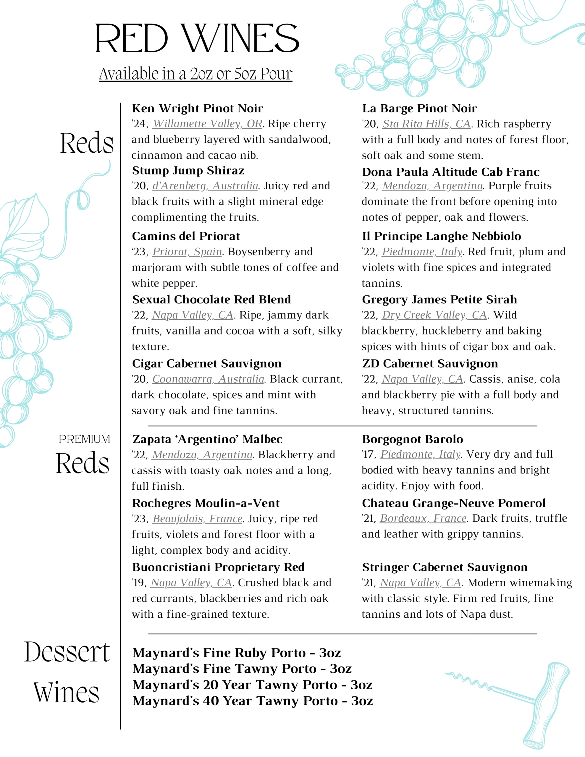 $2 Off All Regularly Priced 5oz Wines By The Glass